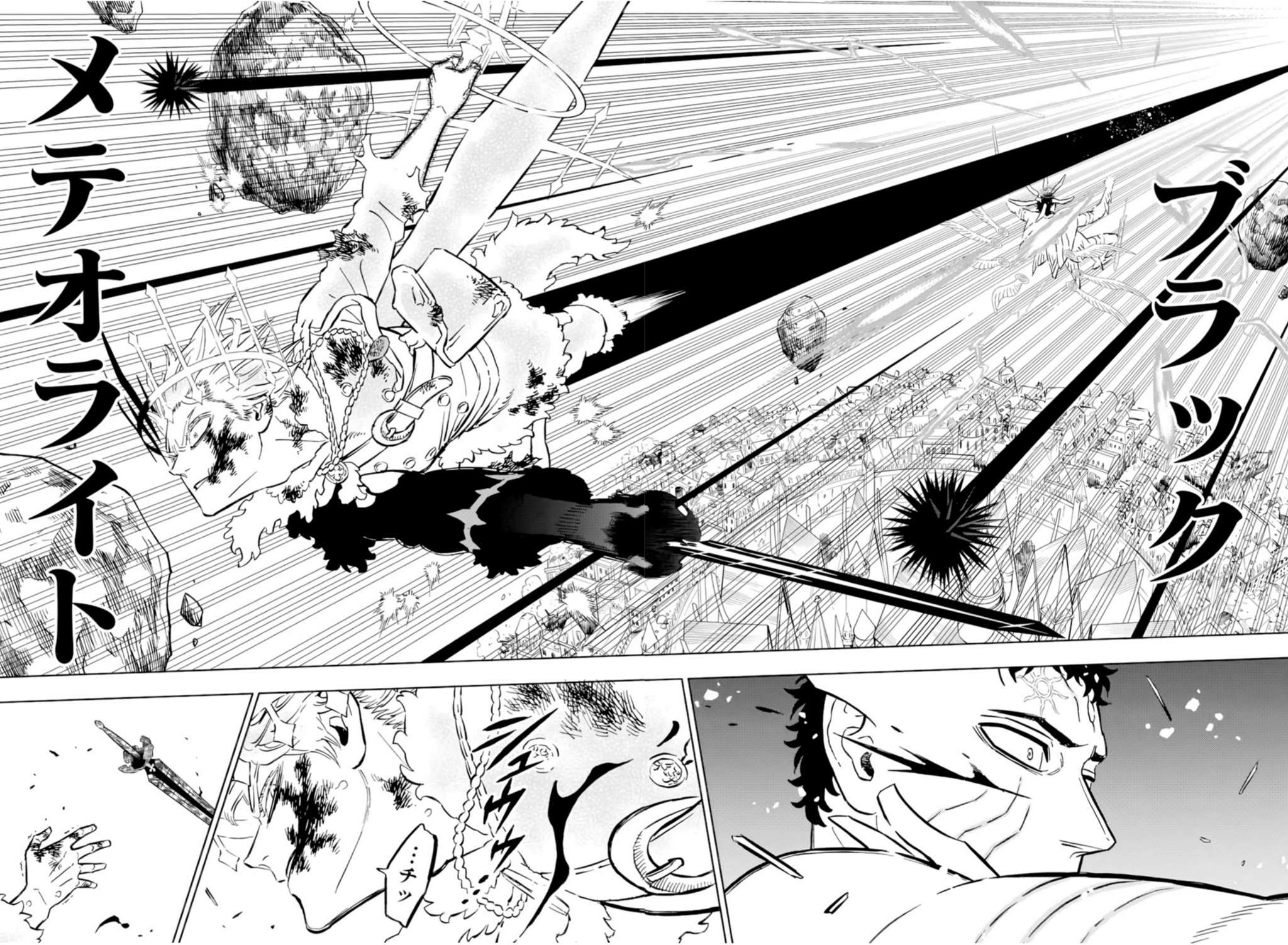 Yuno unleases Black Meteorites, as Lucius points out his anti-magic is about to run out.