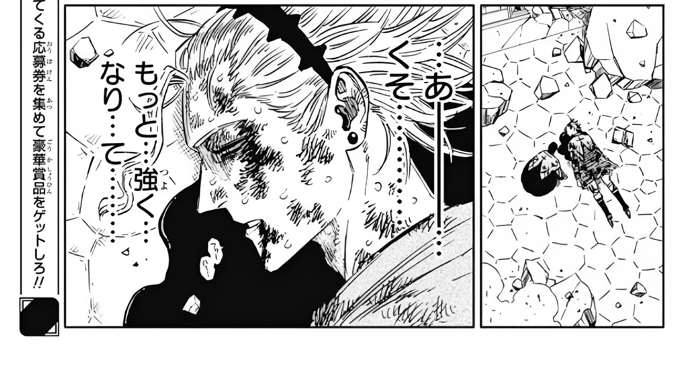 We see Sekke lying on the ground beat up… he says “Damn…. I wanna be stronger….”