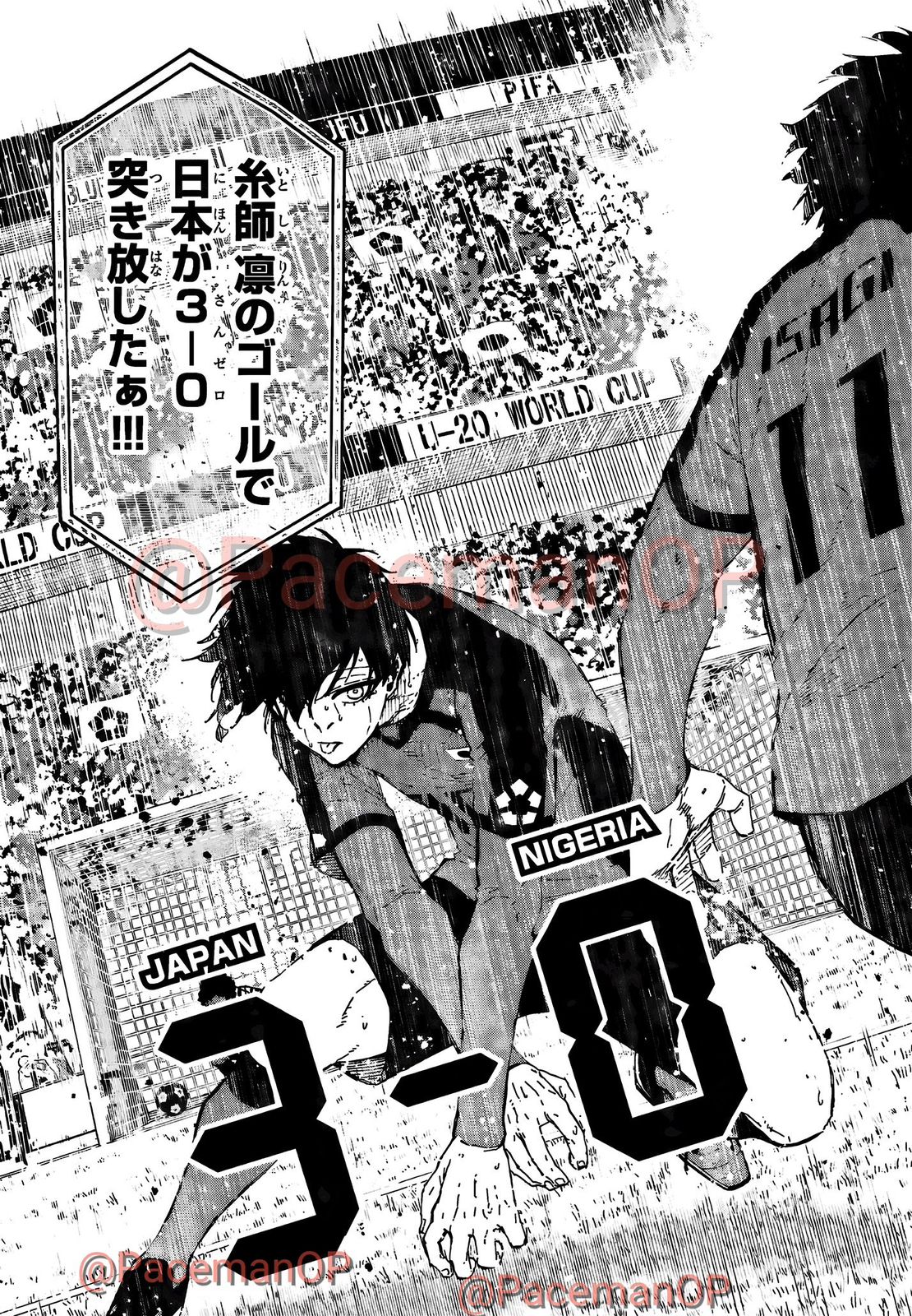 Announcer: Itoshi Rin’s goal brings Japan to a 3-0!!!