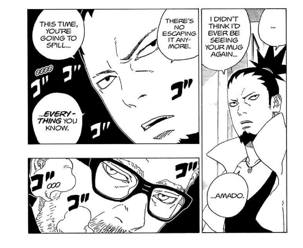 Sebuah pertanyaan yang sangat valid yang diajukan oleh penggemar adalah bagaimana Amado mendapatkan DNA Shibai. Jigen mungkin adalah orang yang memberikan DNA anggota klan Otsutsuki kepada ilmuwan tersebut. Karena Eida tampaknya memiliki karakteristik kemampuan mata yang unik dari berbagai Otustsuki, kemungkinan Shibai memiliki kemampuan yang sama.