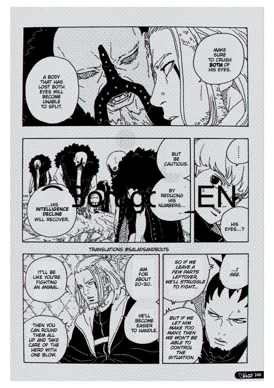 Koji: Be sure to crush both of that person’s “eyes.”An individual that has lost its eyes cannot divide any further. However, be careful…That person’s squadron… …going below that, …has “eyes.”