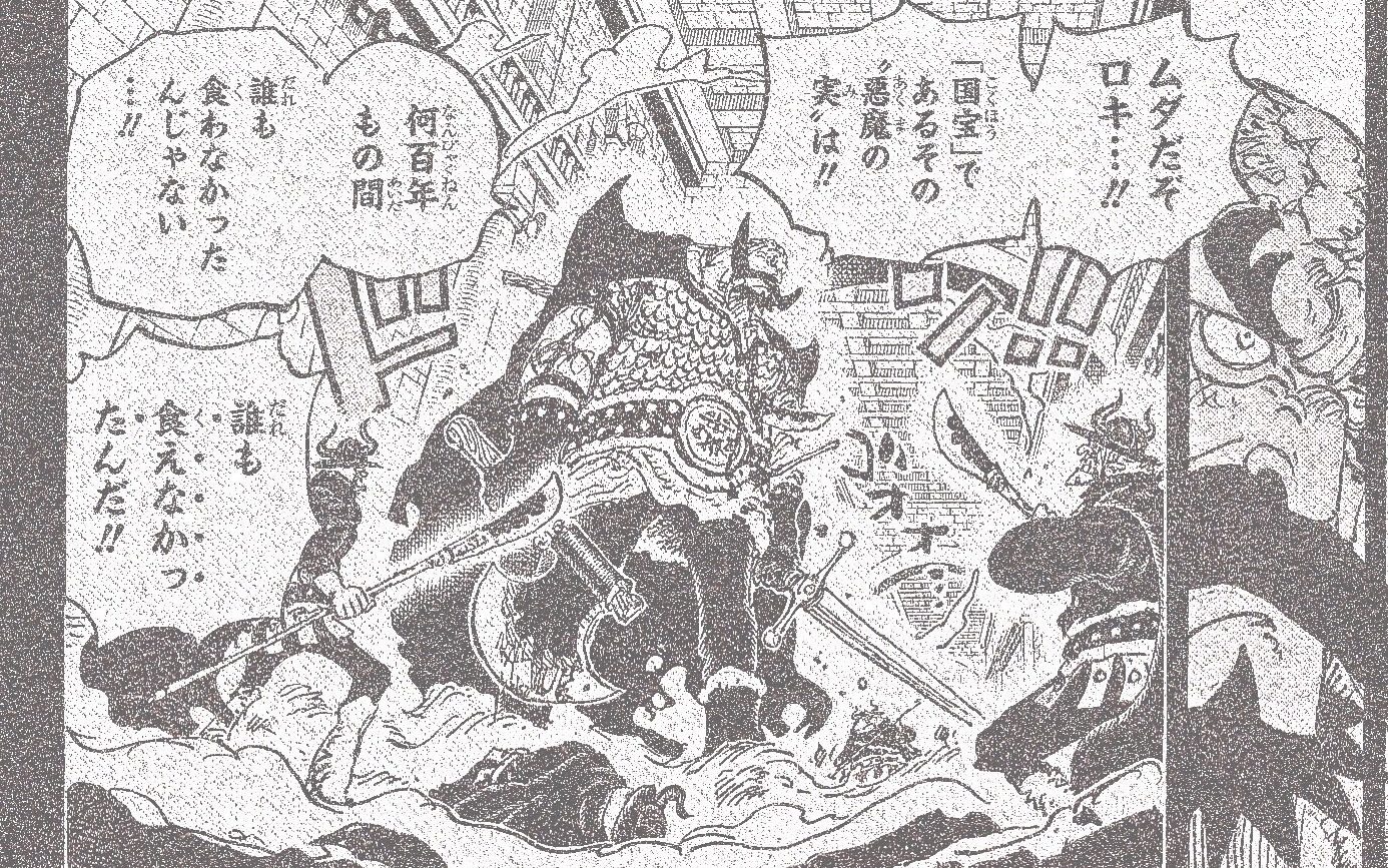 Panel beralih ke Harald, ia menjelaskan bahwa belum pernah ada orang yang bisa memakan Buah Iblis yang jadi Harta Nasional Elbaf selama beratus-ratus tahun.