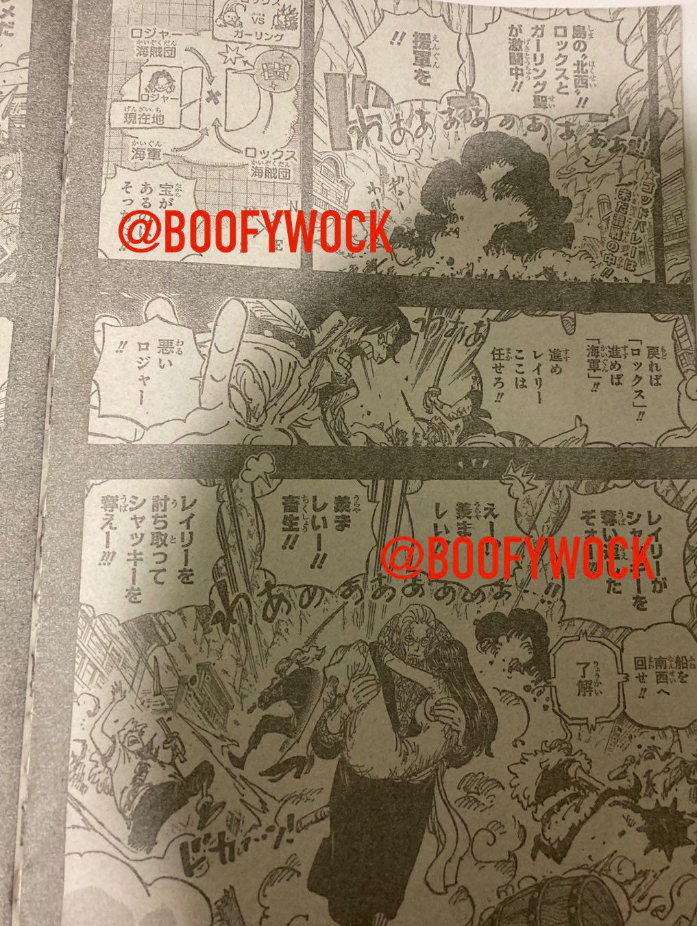 The chapter begins with Rayleigh carrying Shakky away to escape from God Valley. Shiki stops other pirates from attacking Rayleigh, knowing it could harm Shakky as well.
