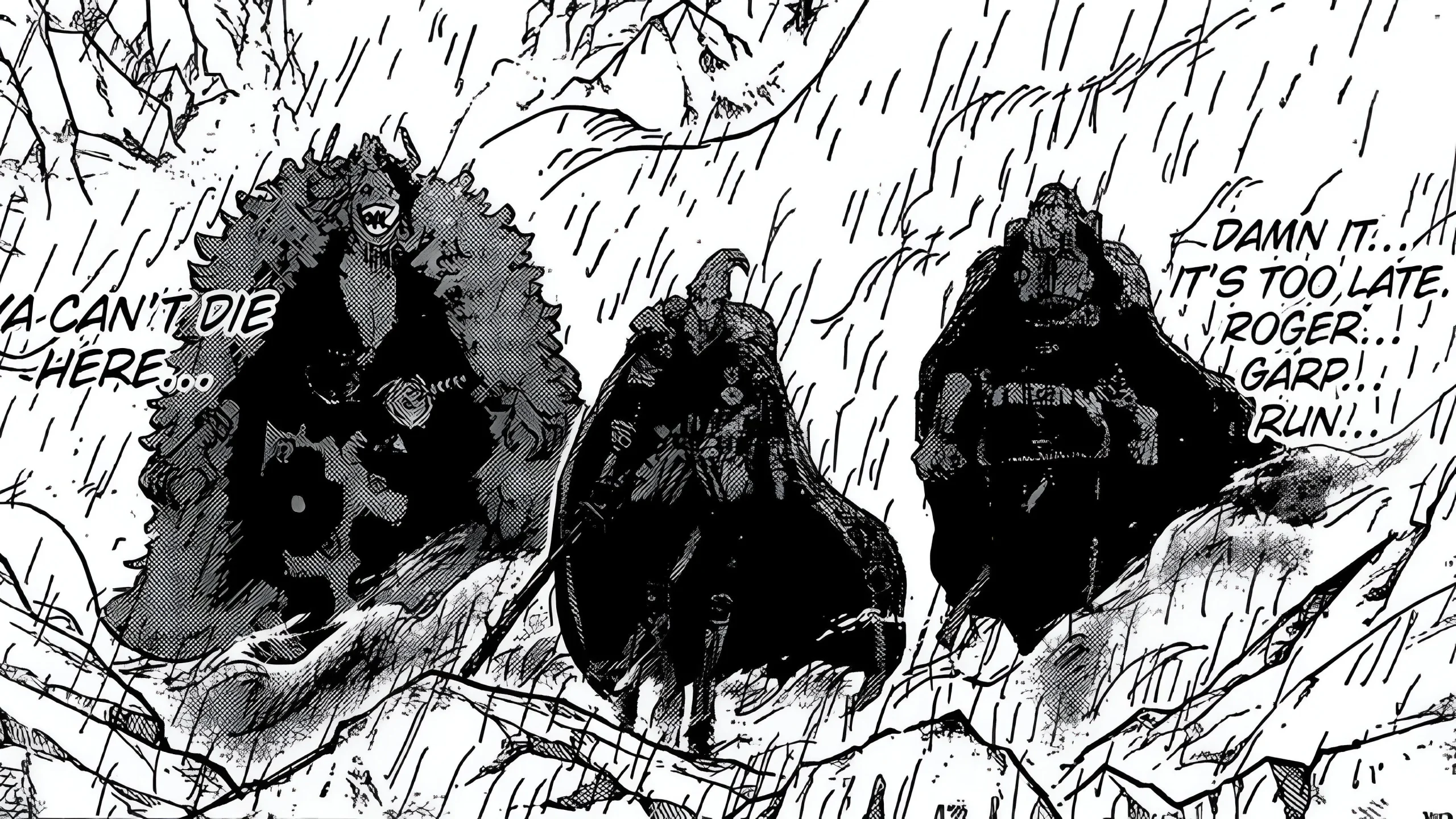 In reality, Garling delivered the finishing blow to Rocks D. Xebec after the pirate kingpin was already utterly exhausted from a brutal fight against Garp and Roger. Garling himself displayed no signs of battle — no wounds, no fatigue, no damage to his clothing — a stark contrast to the defeated fighters around him who lay unconscious and struggling to breathe.