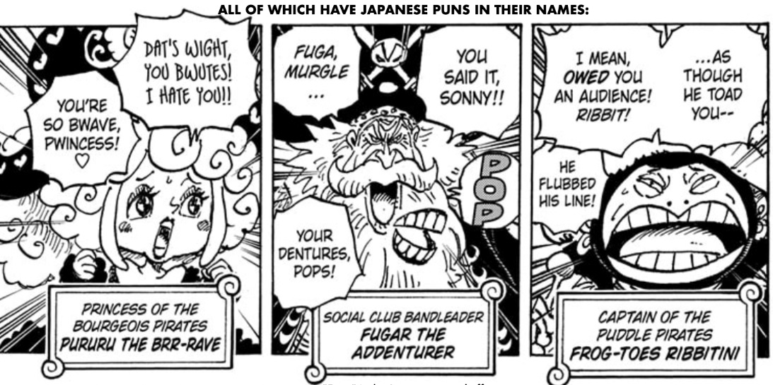 Sebagai contoh, tiga Kapten bajak laut yang muncul di panel Chapter 1079.