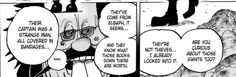 Ditambah lagi, kemungkinan besar Elbaf adalah pulau yang aman untuk Saul bersembunyi sehingga dia (sepertinya) menghabiskan waktunya bertahun-tahun membaca buku-buku Ohara dan mengetahui rahasia dunia terkait Kerajaan Kuno dan Abad Kekosongan hasil penelitian para cendekiawan Ohara.