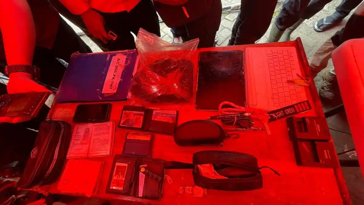 Selain temuan tas tersebut, tim SAR juga membawa sejumlah barang lain ke posko, di antaranya dompet berisi identitas Muhammad Farhan Gunawan dan Dwi Murdiono, STNK atas nama Koharuddin, ransel kecil, tablet, serta beberapa barang yang telah mengalami kerusakan akibat benturan.