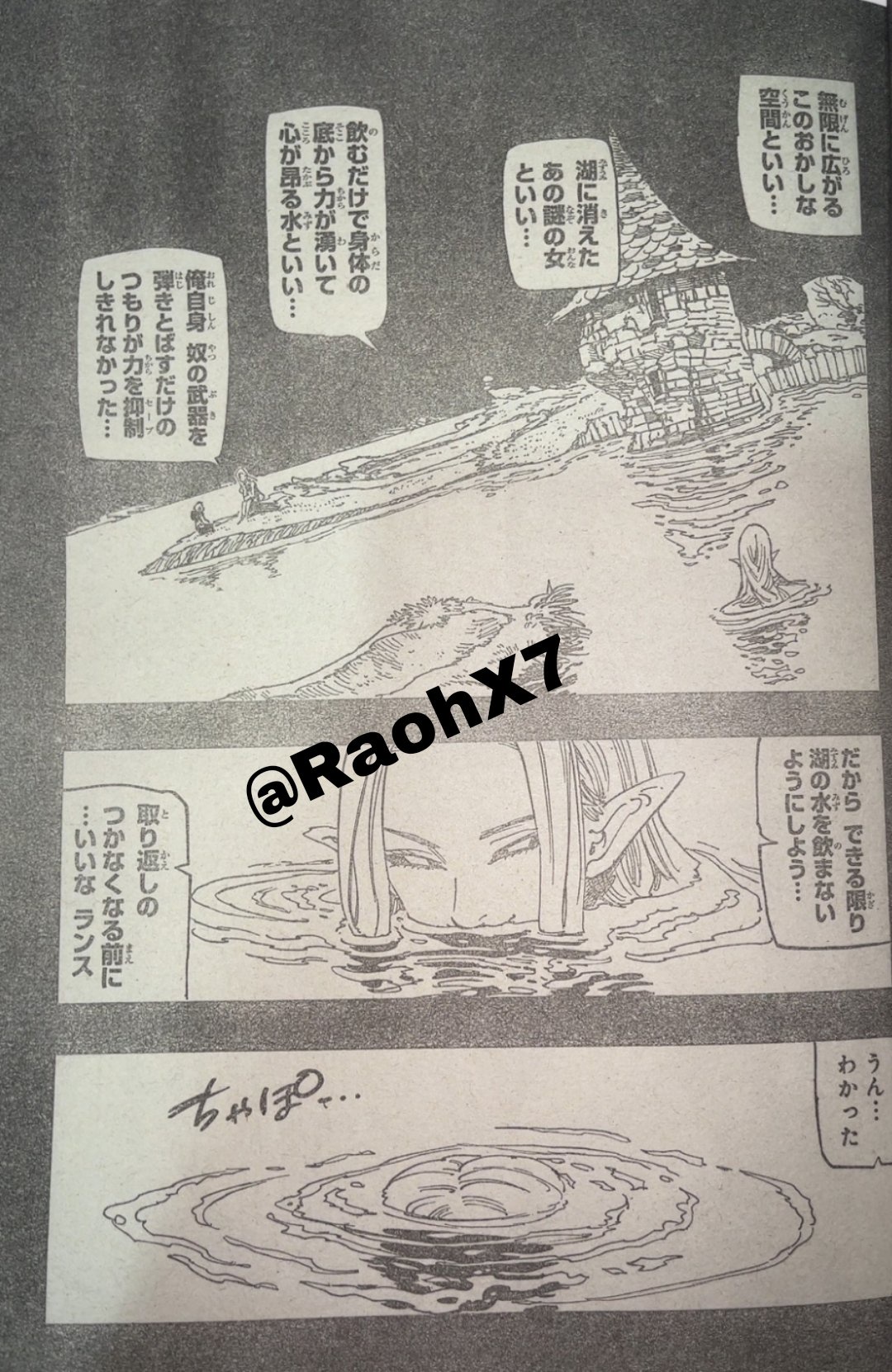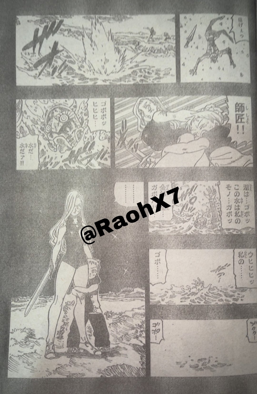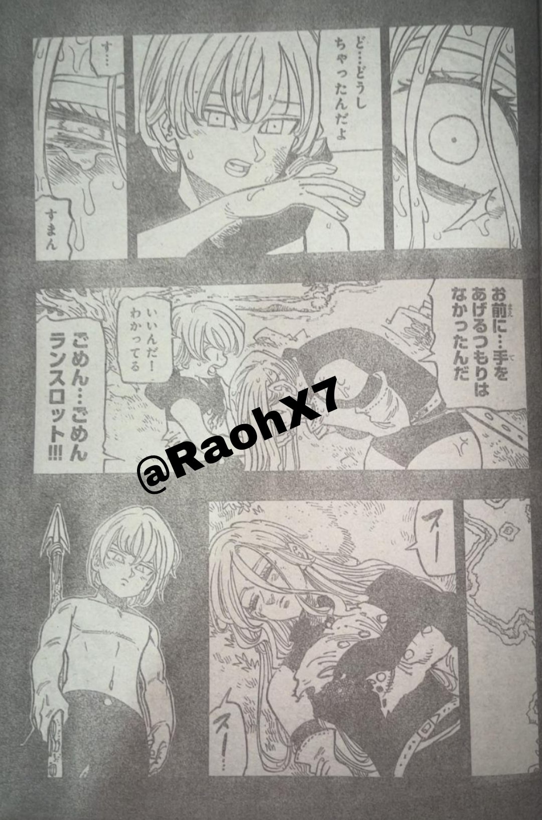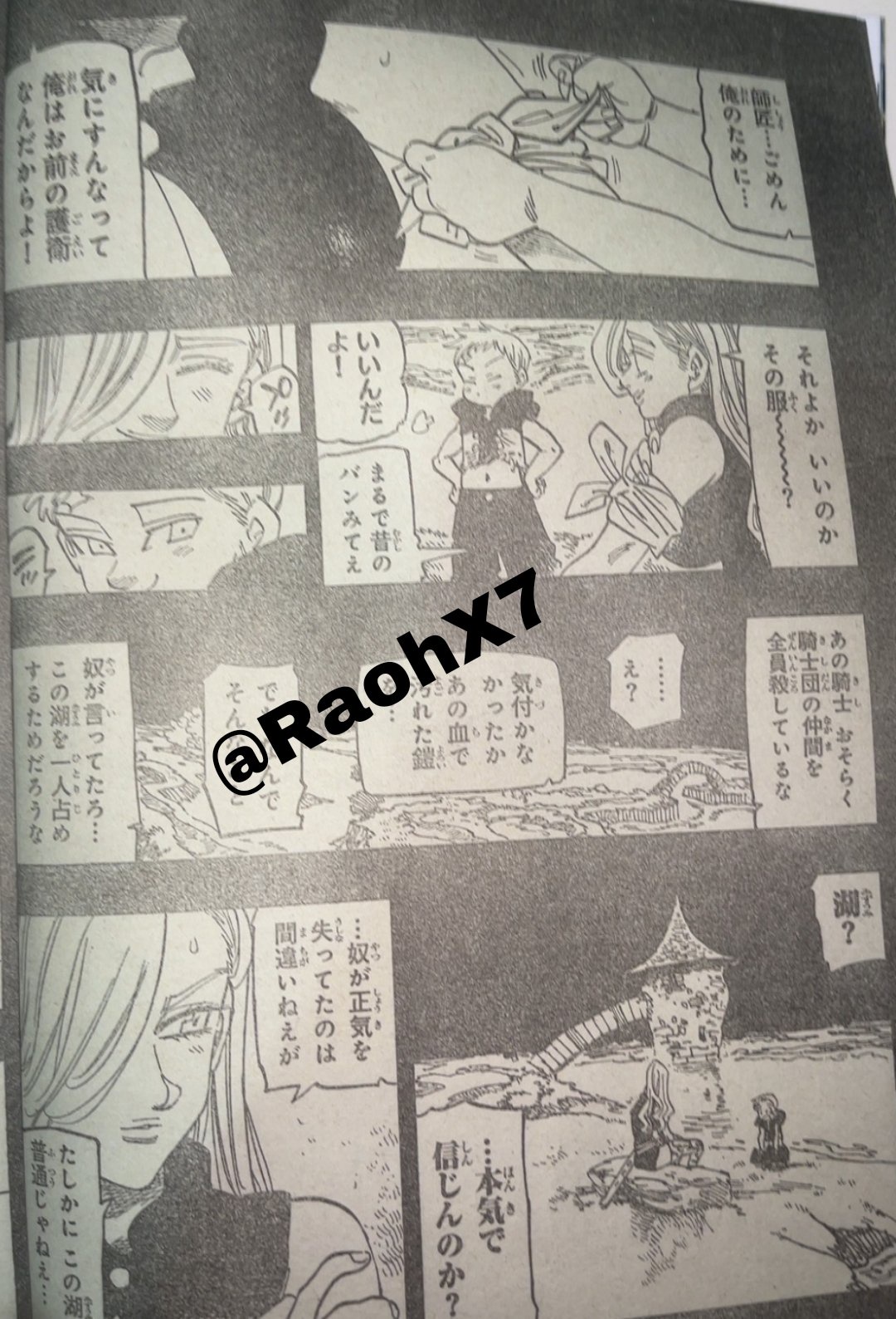 Dalam manga Nanatsu no Taizai Mokushiroku no Yonkishi Chapter 210 Sub Indo, Lancelot melawan Penjaga Danau.