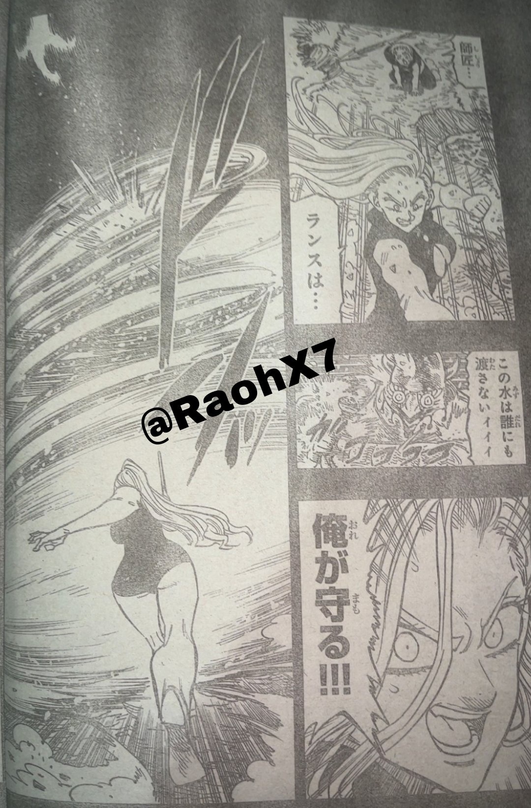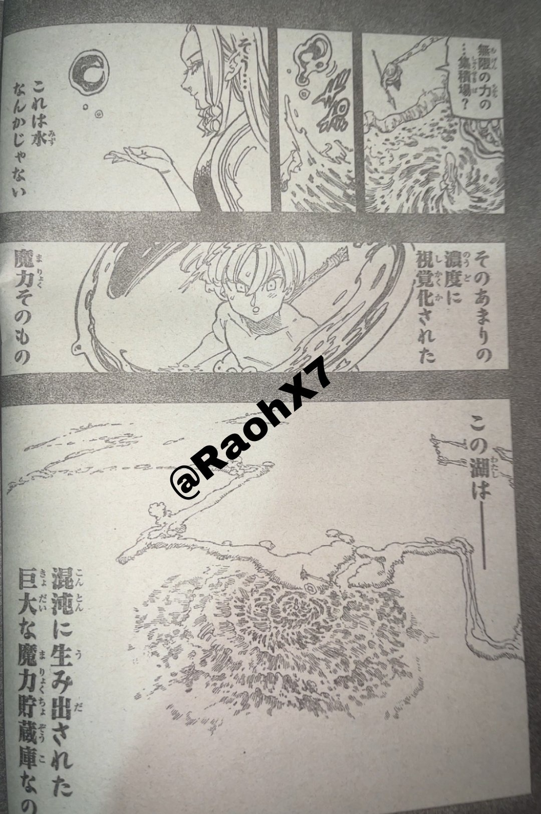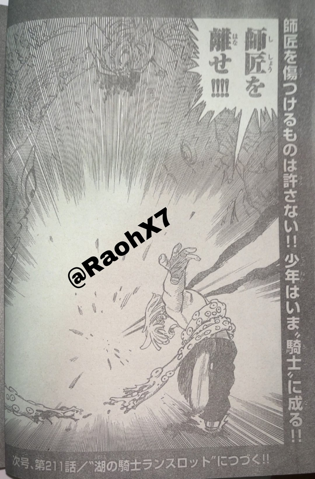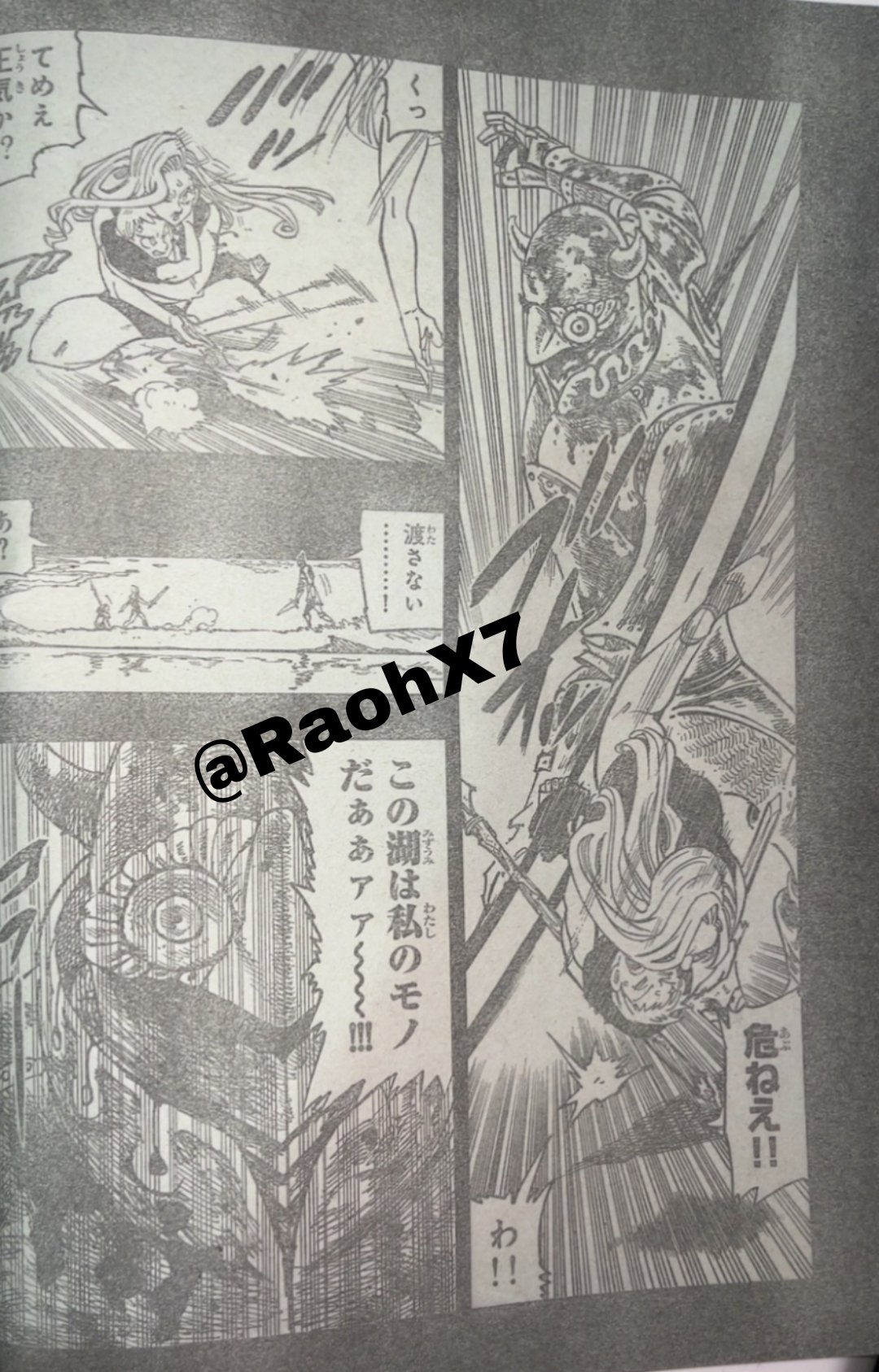 Dalam manga Nanatsu no Taizai Mokushiroku no Yonkishi Chapter 210 Sub Indo, Lancelot melawan Penjaga Danau.