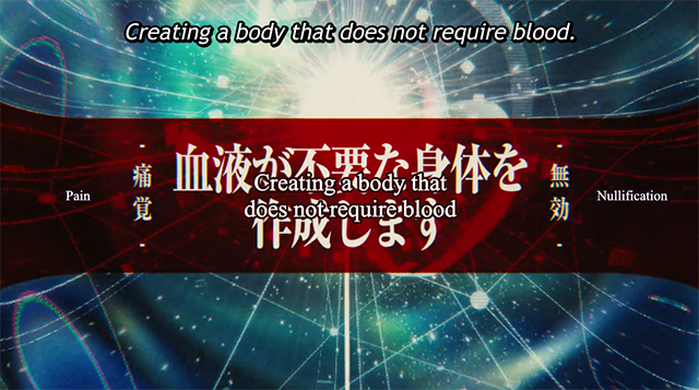 Pain Nullification dan Creating a body that does not require blood (Penghilang Rasa Sakit dan Menciptakan tubuh yang tak membutuhkan darah)